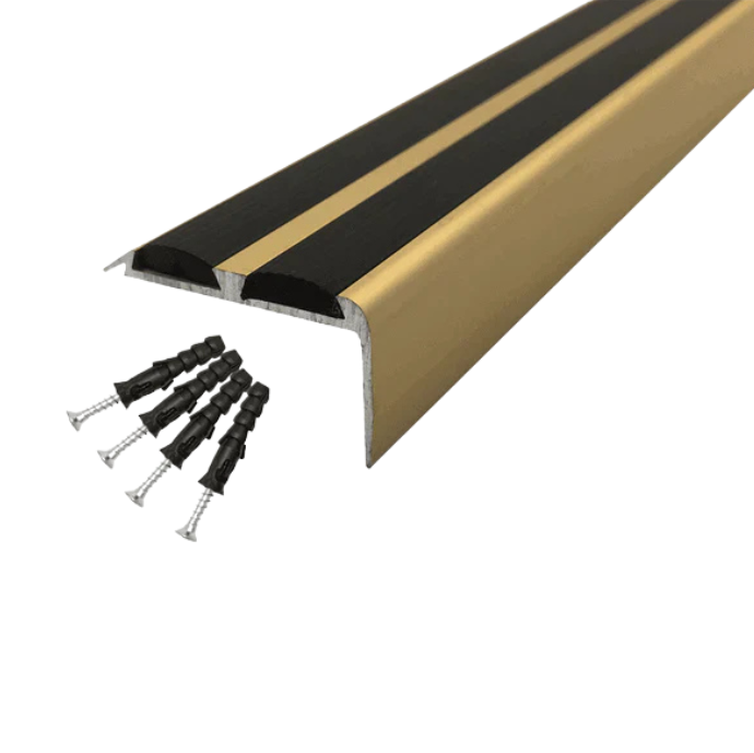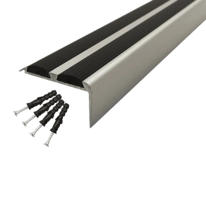 Give stair edges a consistent, finished look with this 15-pack of anodised aluminium stair nosings, designed for screw-fit installation. Each 0.9m length features two anti-slip rubber inserts to improve grip underfoot while helping protect the stair edge from everyday knocks and wear. The profile also helps cover small edge imperfections for a cleaner appearance.