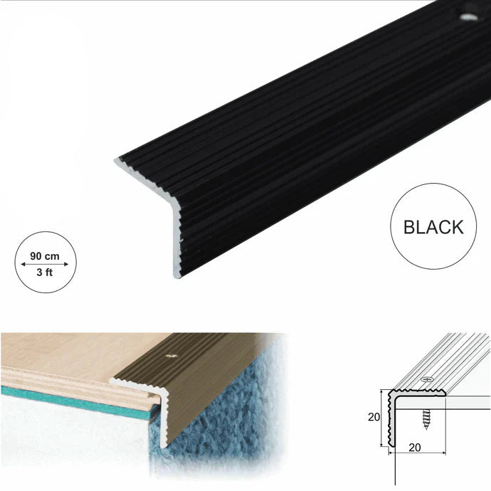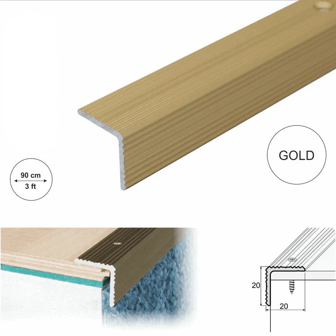 This 20 × 20mm aluminium stair nosing edge trim is designed to provide compact edge protection and improved grip on staircases used in residential and commercial environments. The profile includes ribbing across both the tread and riser sections to support secure footing and clearer step definition.