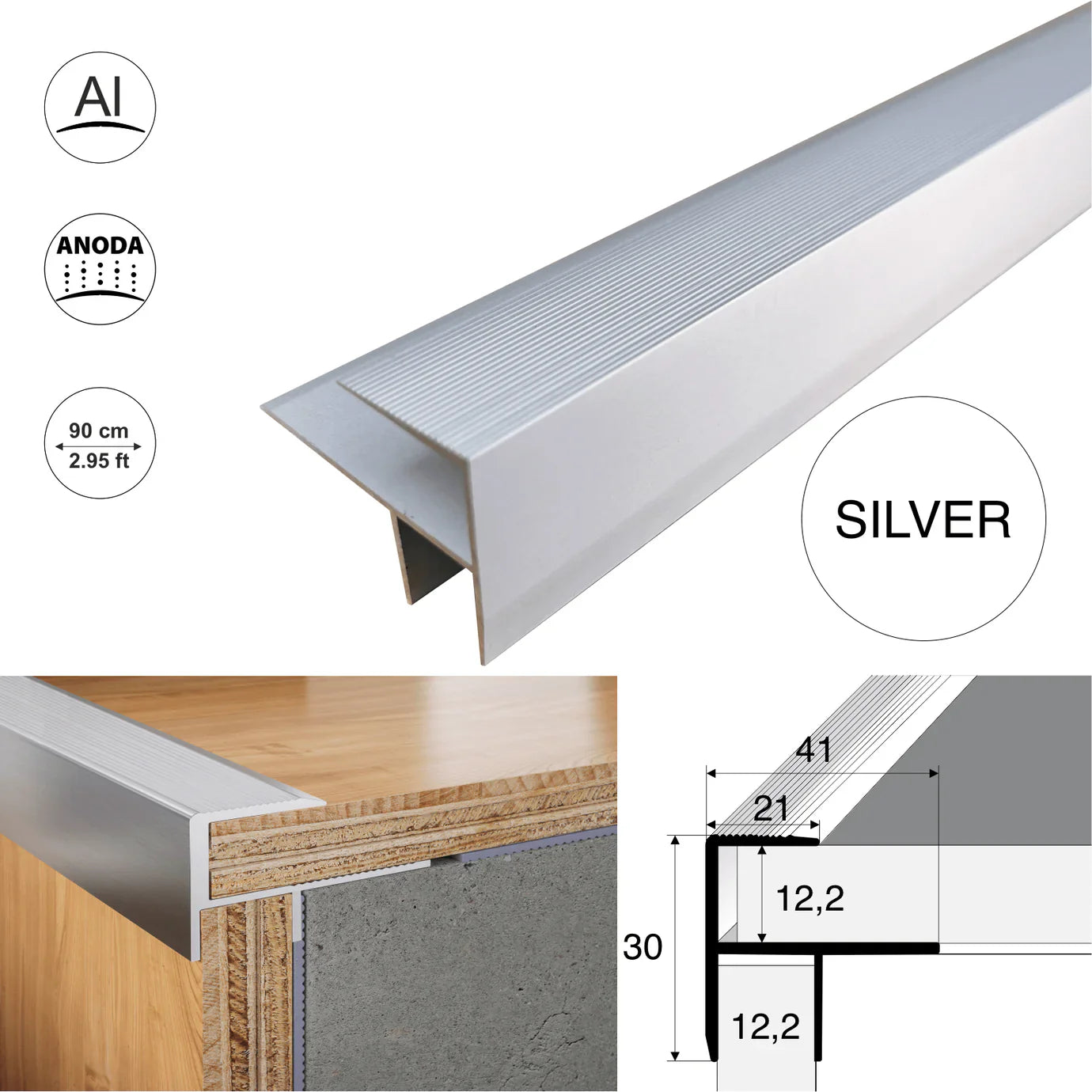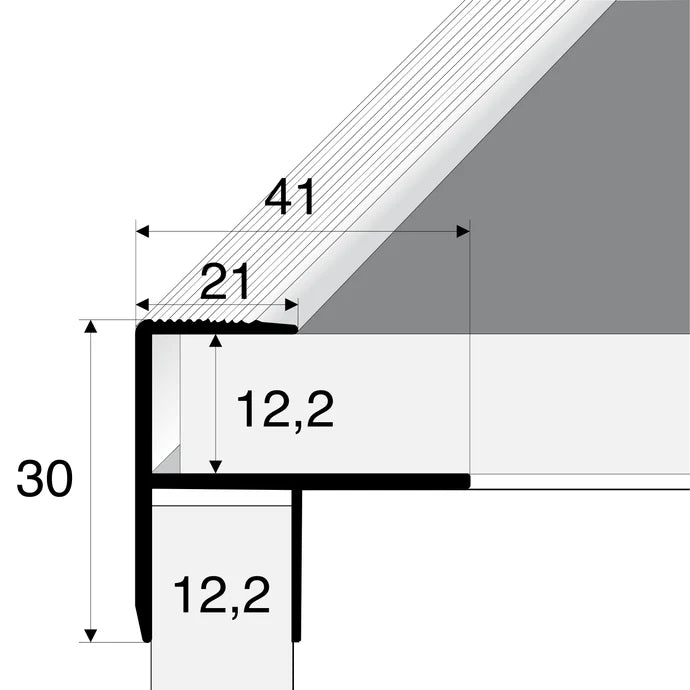 30 x 21mm Push-In Stair Nosing Anodised Aluminium Profile for 12.2mm Floorin