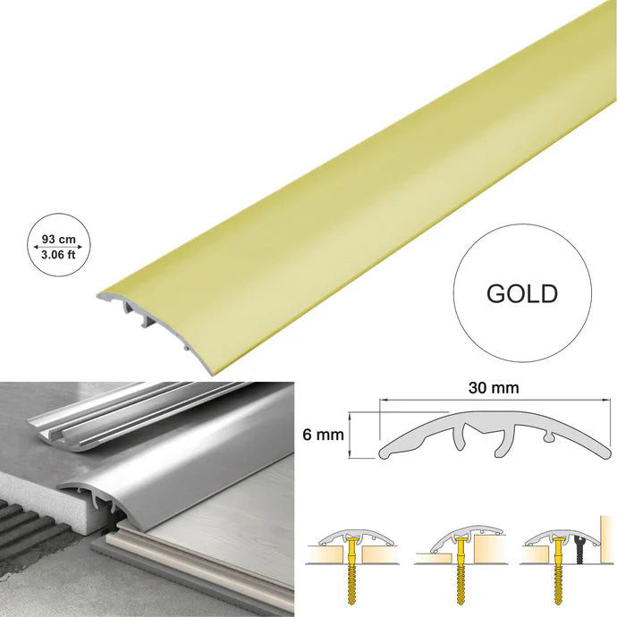 Available in silver and gold finishes, the strip is designed to coordinate with modern flooring styles while maintaining a low-profile appearance.