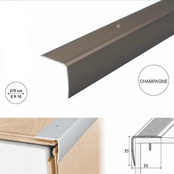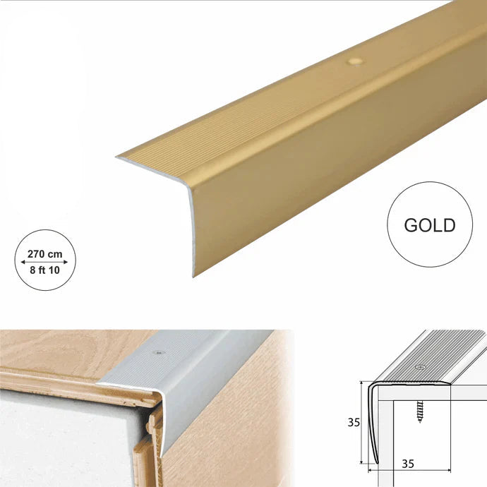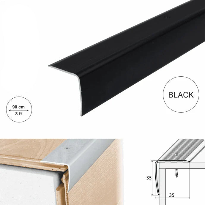 This 35 × 35mm aluminium stair nosing edge trim is designed to improve step definition and surface grip on staircases used in residential and commercial environments. The ribbed pattern is applied to the tread area only, providing targeted slip resistance where foot contact occurs.