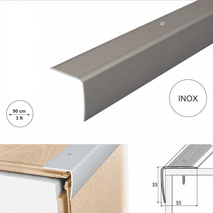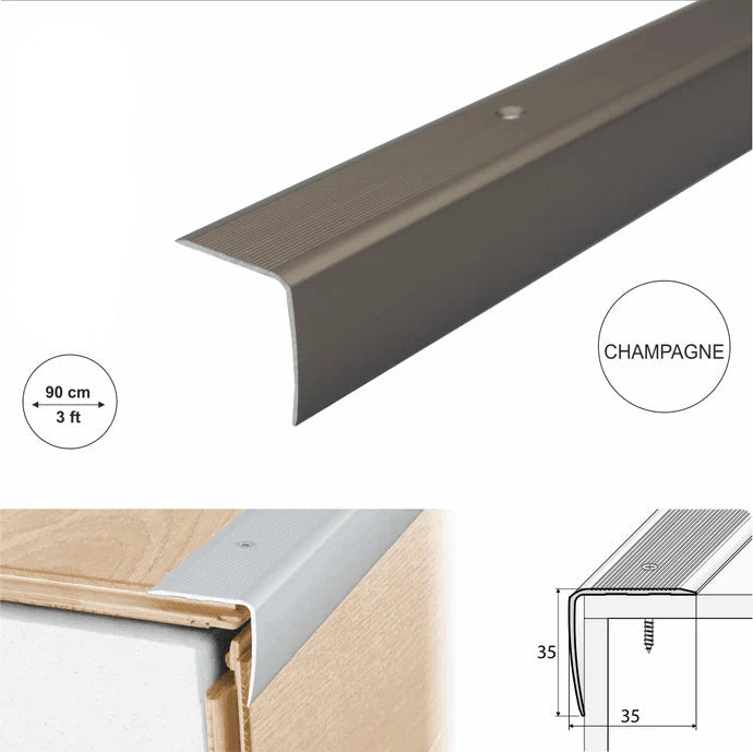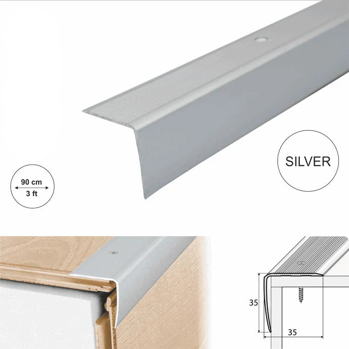 35 × 35mm Anodised Aluminium Stair Nosing Trim with Ribbed Non-Slip Tread