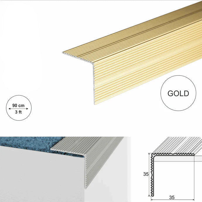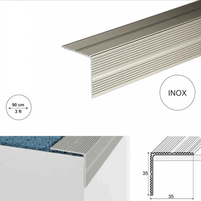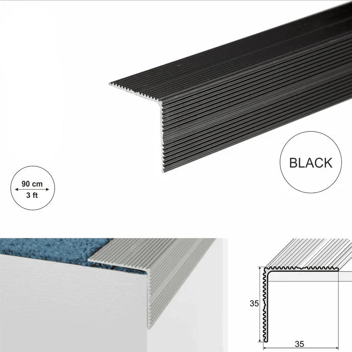 35 x 35mm Anodised Aluminium Stair Nosing with Ribbed Anti-Slip Grip – Self-Adhesive Straight Edge