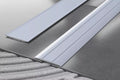 Cut the profile to the required size using a fine-tooth hacksaw. Ensure the surface is dry, clean, and free of dust before fitting. Peel back the adhesive strip and press the trim firmly into position to achieve a secure bond.