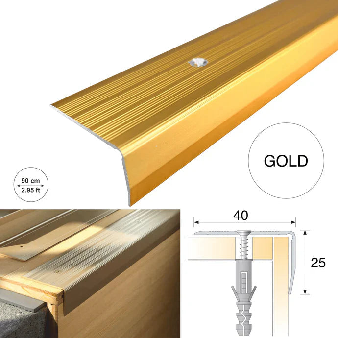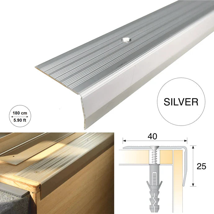 40 x 25mm Ribbed Aluminium Stair Nosing – Anodised Edge Trim with Screw Fix (0.9m or 1.8m)