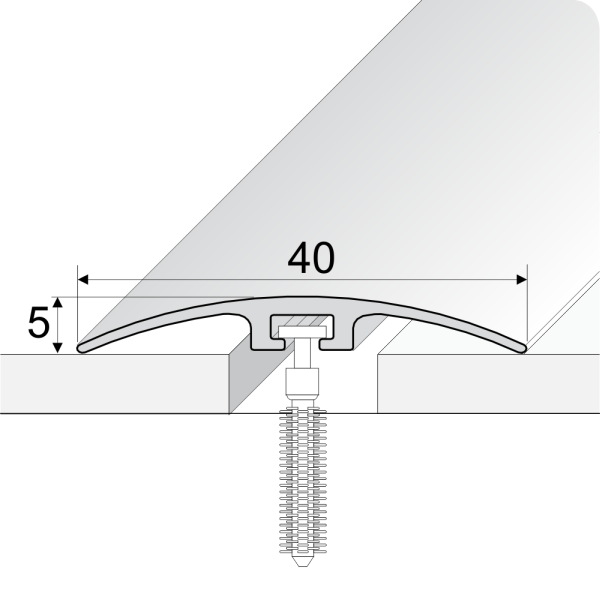 This profile is suitable for level floors or for surfaces with a small height difference of up to 5mm. Made from robust UPVC, it stands up well to frequent foot traffic in both residential and commercial spaces. Its construction combines strong mechanical fixing with an adhesive layer that cushions the joint, reducing sound and helping to keep dirt and moisture from collecting underneath.