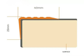 Ensure the step area is smooth, clean, and free from grease or dust. If required, gently warm the profile for added flexibility. Cut the stair nosing to the desired width, peel off the adhesive strip, and press firmly into place along the stair edge. Allow at least one hour for the adhesive to bond before use.