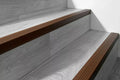 Warm the profile slightly if required for flexibility. Clean and level the step area, then cut the stair nosing to the required width. Apply adhesive or strong double-sided tape to the upper section only, press it firmly into place, and allow the adhesive to set properly. Avoid gluing the lower section to preserve natural movement.