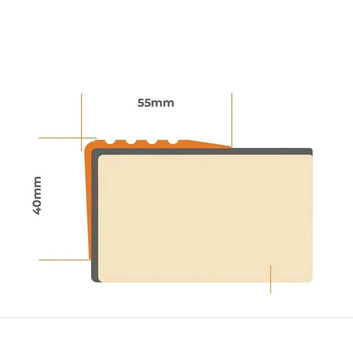 This 55 x 40mm flexible PVC stair nosing is designed for steps with pronounced edges, helping improve grip and protect stair fronts. The textured tread area supports steadier footing, while the integrated caution edge increases step-edge visibility for everyday use.