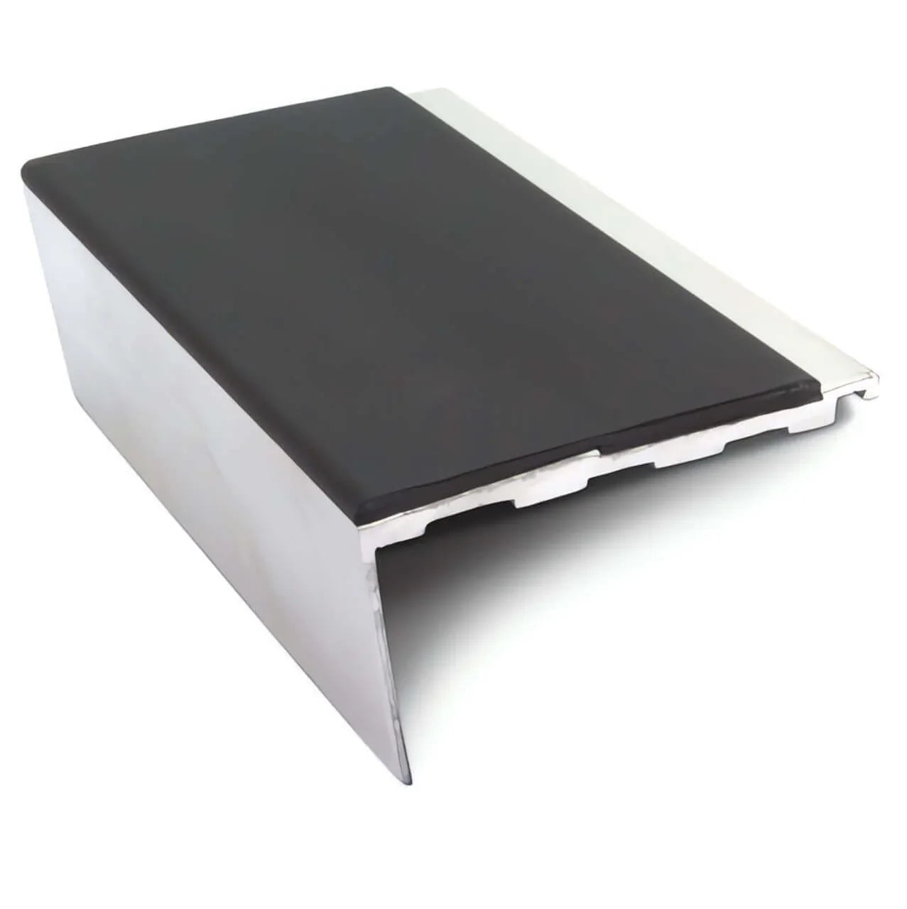 A secure channel design keeps the slip-resistant insert firmly seated and increases exposure at the leading edge, supporting steadier foot placement on the step front.
