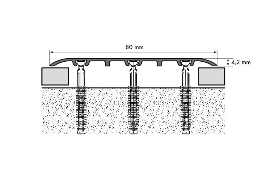This 80mm aluminium floor transition bar provides a strong and seamless connection between different flooring types, helping create a professional and balanced finish. The wide anodised profile bridges small height variations between fitted carpets, parquet, vinyl, and tiles, reducing trip hazards while protecting floor edges from wear and impact.