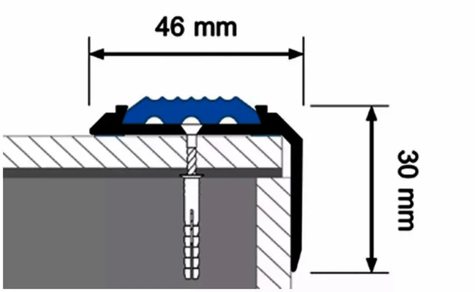 This aluminium stair edge protector combines strength, safety, and a clean finish for modern stairways. The 46mm x 30mm profile is designed to reinforce stair edges while offering an anti-slip surface for added security. Made from anodised aluminium, it provides excellent resistance to everyday wear, ensuring a stable and long-lasting step covering suitable for homes, offices, and public areas.