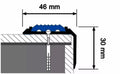Remove the rubber insert to expose the screw channel. Position the trim on the step edge and mark drill points. Secure the profile with appropriate screws, then reinsert the rubber strip for a flush finish.