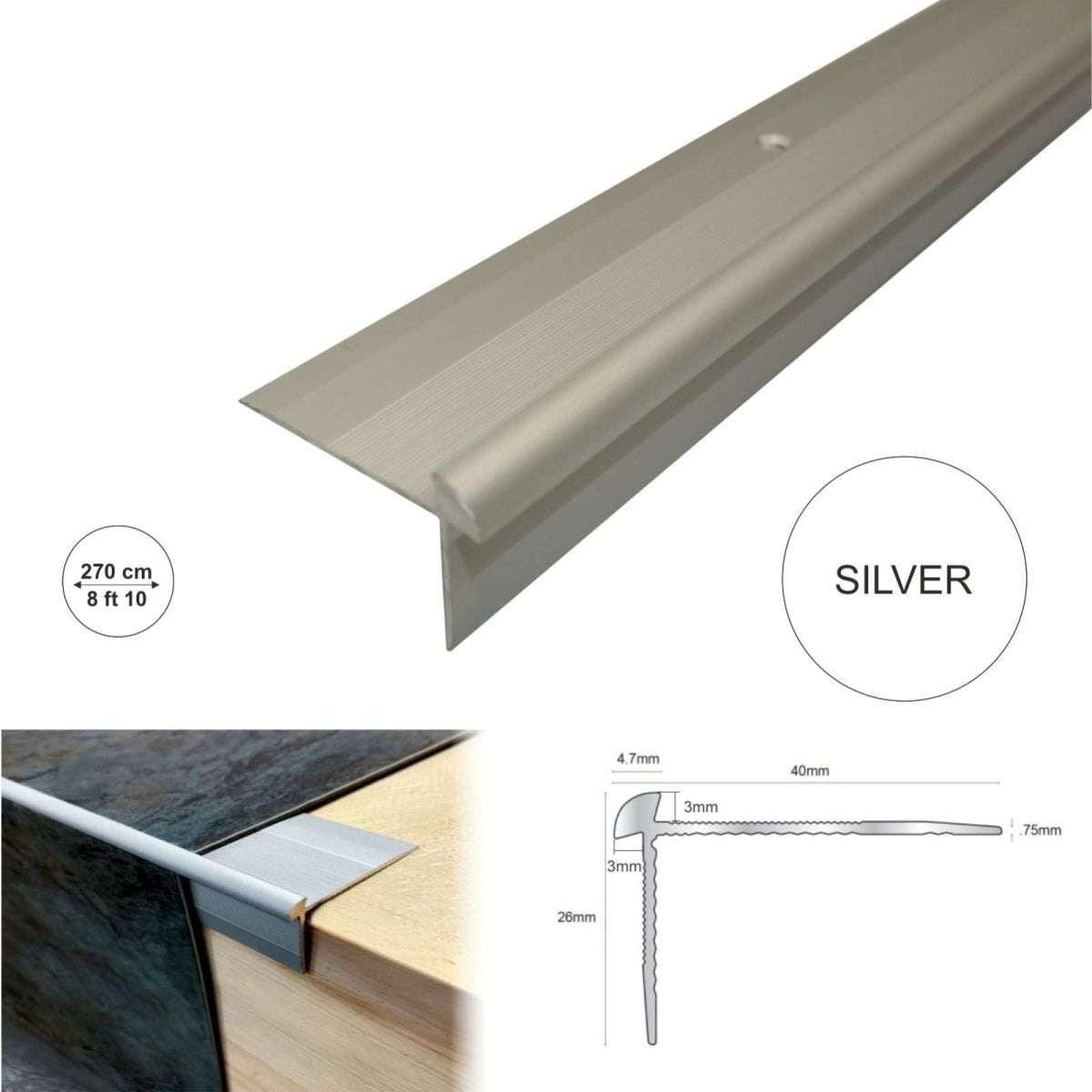 Outer Corner LVT Stair Nosing 40 x 26mm – Anodised Aluminium Edge Trim for 3mm Floors, 2.7m Length