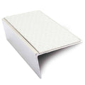 The insert channel is fitted with a tredsafe PVC insert featuring a raised 3D pyramid-style grip texture to support traction in wet and dry conditions. Supplied pre-drilled through the insert. Suitable for use on concrete and precast stairs, and compatible with common floor finishes including LVT, vinyl, laminate, and wood.